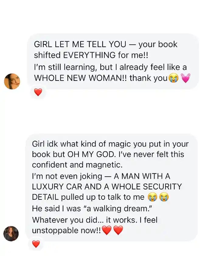 If, after 30 days, you’ve done the work and feel no shift in your confidence, self-esteem, or the way men respond to you, we’ll give you your money back.